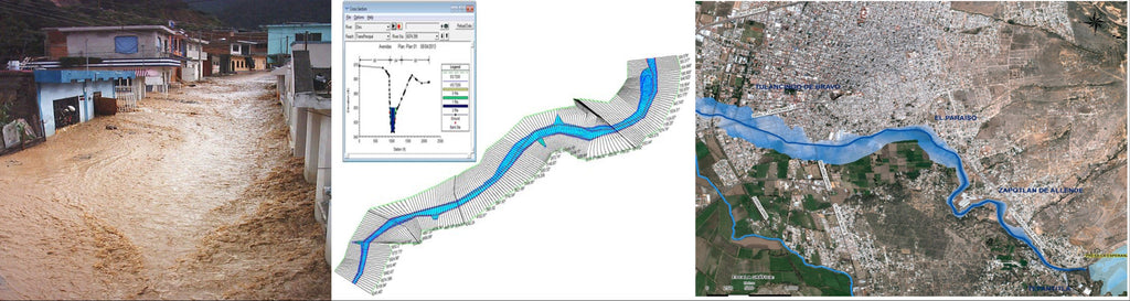 Simulación de rotura de presas o avenidas máximas, y elaboración de mapas de riesgo de inundaciones.